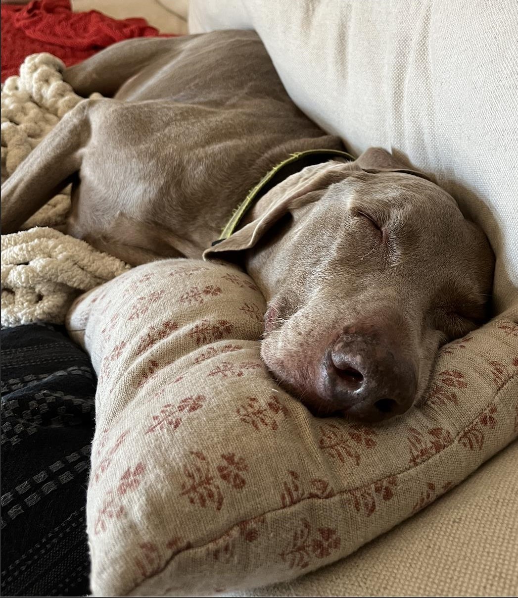 I have a rescue dog named Bodhi (pictured on the right). He’s a Weimaraner, and he was named after Patrick Swayze’s character in Point Break. I also have a goldfish that’s somehow still alive after 17 years.